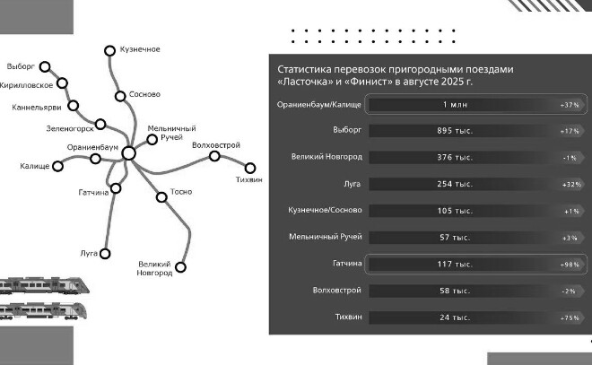 - Санкт-Петербург – Ораниенбаум – Калище: рост на 37%.