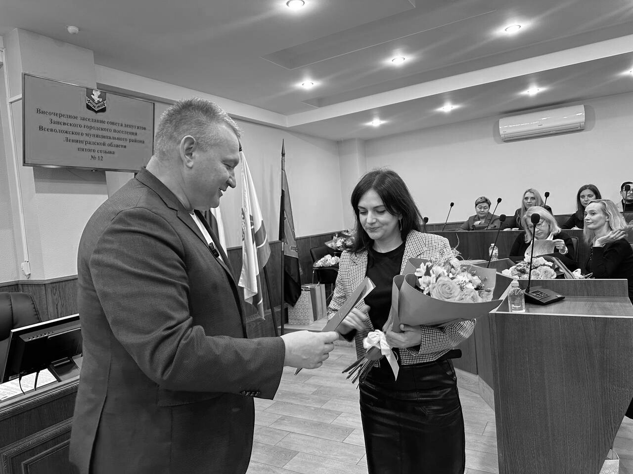 В Заневском городском поселении 20 ноября состоялась торжественная церемония вручения земельных сертификатов льготным категориям граждан. Документы, подтверждающие право собственности на землю, были переданы многодетной семье и супруге участника специальной военной операции (СВО).
