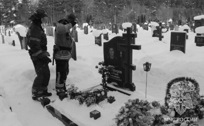 На Кузьмоловском кладбище Всеволожского района прошла траурная церемония, посвящённая памяти Дмитрия Евгеньевича Тихомирова — пожарного, героически погибшего при исполнении служебного долга. Почтить его пришли сослуживцы, родные, а также ученики Токсовской школы, где он когда-то учился и преподавал физкультуру.