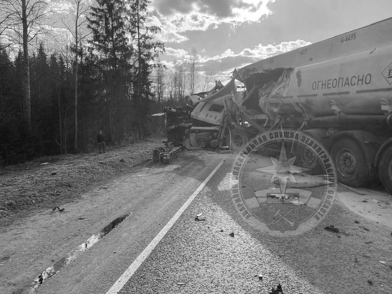 В Тосненском районе спасатели ликвидировали последствия тяжелого ДТП с участием бензовоза