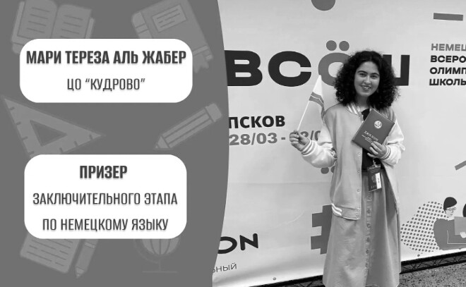 Ученица Центра образования «Кудрово» Мари Тереза Аль Жабер завоевала третью награду Ленинградской области на заключительном этапе Всероссийской олимпиады школьников (ВсОШ). Девушка успешно выступила в финале по немецкому языку, подтвердив высокий уровень владения языком и глубину лингвистических знаний.